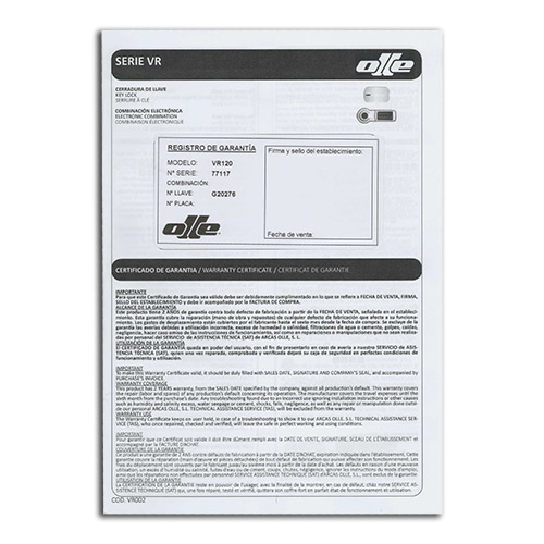 La cassaforte VR-190 è appositamente progettata per proteggere i videoregistratori le cui dimensioni non superano 1U rack. Si compone di un box in acciaio con anta di spessore 2 mm e telaio in acciaio di 4 mm, dotato di prese d'aria dislocate su tutto il box, vetri posteriori per il cablaggio e vari fori per ancorare la cassaforte. È finito in vernice polimerizzata epossipoliestere a 180 ºC molto resistente.