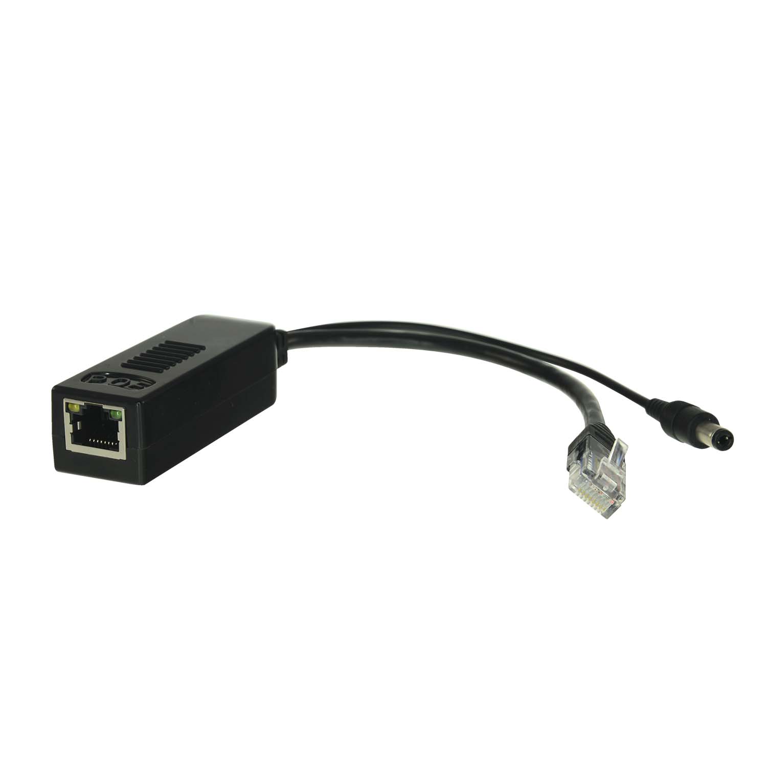 Il cavo Ethernet alimentato PoE è collegato al dispositivo tramite RJ45. Dispone di due uscite: da una parte la trasmissione dati (connettore RJ45) e dall'altra alimentazione (jack) con una tensione di uscita DC 12 V.