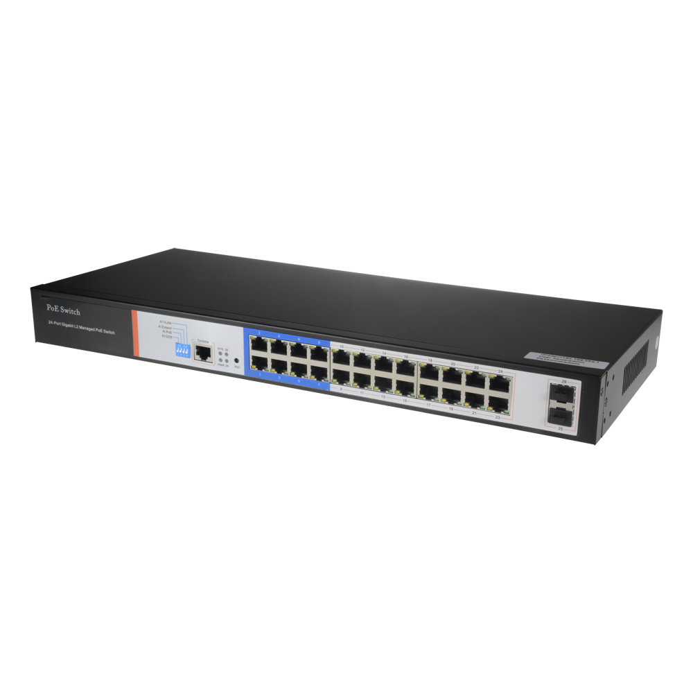 - 24 porte PoE + 2 Gigabit SFP