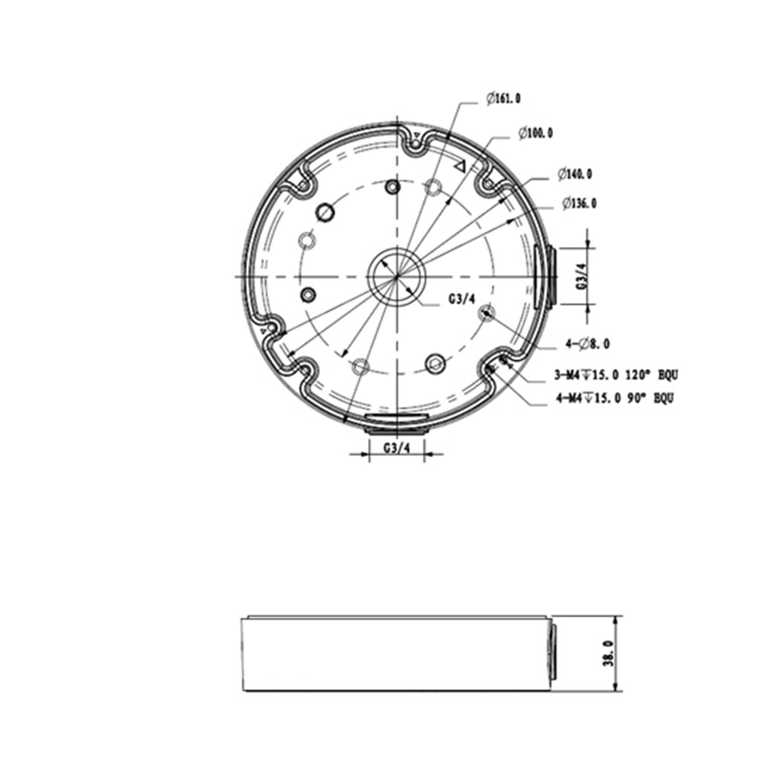 Permette di inserire al suo interno l'alimentatore, i cavi e gli accessori di installazione. Ha più fori per l'installazione di diversi tipi di telecamere dome. Fissaggio a parete o soffitto tramite 4 viti incluse. La telecamera è installata nella copertura removibile del supporto. Consente il passaggio del cablaggio interno.