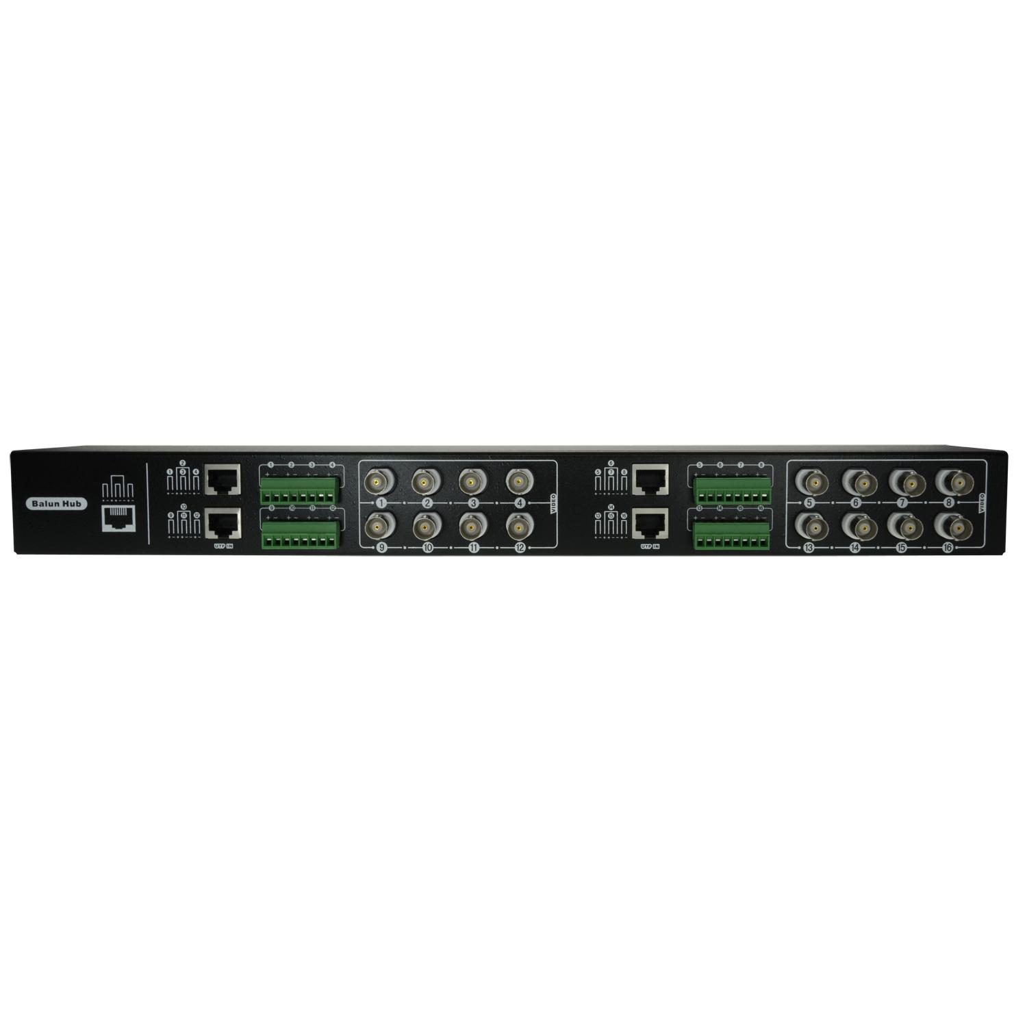 Ricetrasmettitore video passivo a doppino intrecciato di 16 canali, ottimizzato per video ad alta definizione HDTVI / HDCVI / AHD / CVBS. Può funzionare come trasmettitore o ricevitore e permette di trasmettere il segnale di un massimo di quattro videocamere tramite un unico cavo UTP.