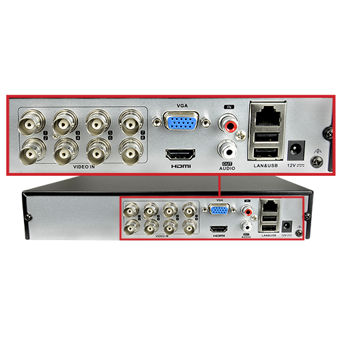 - 8 canali video HDTVI/HDCVI/AHD/CVBS / 2 IP / 1 canali audio