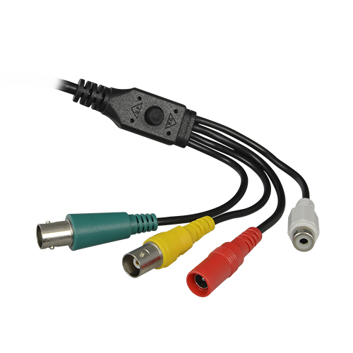 Connessione video per BNC in formati di alta definizione HDTVI / HDCVI / AHD / CVBS, connessione con bottone e connessione RCA per connessione con microfono esterno.